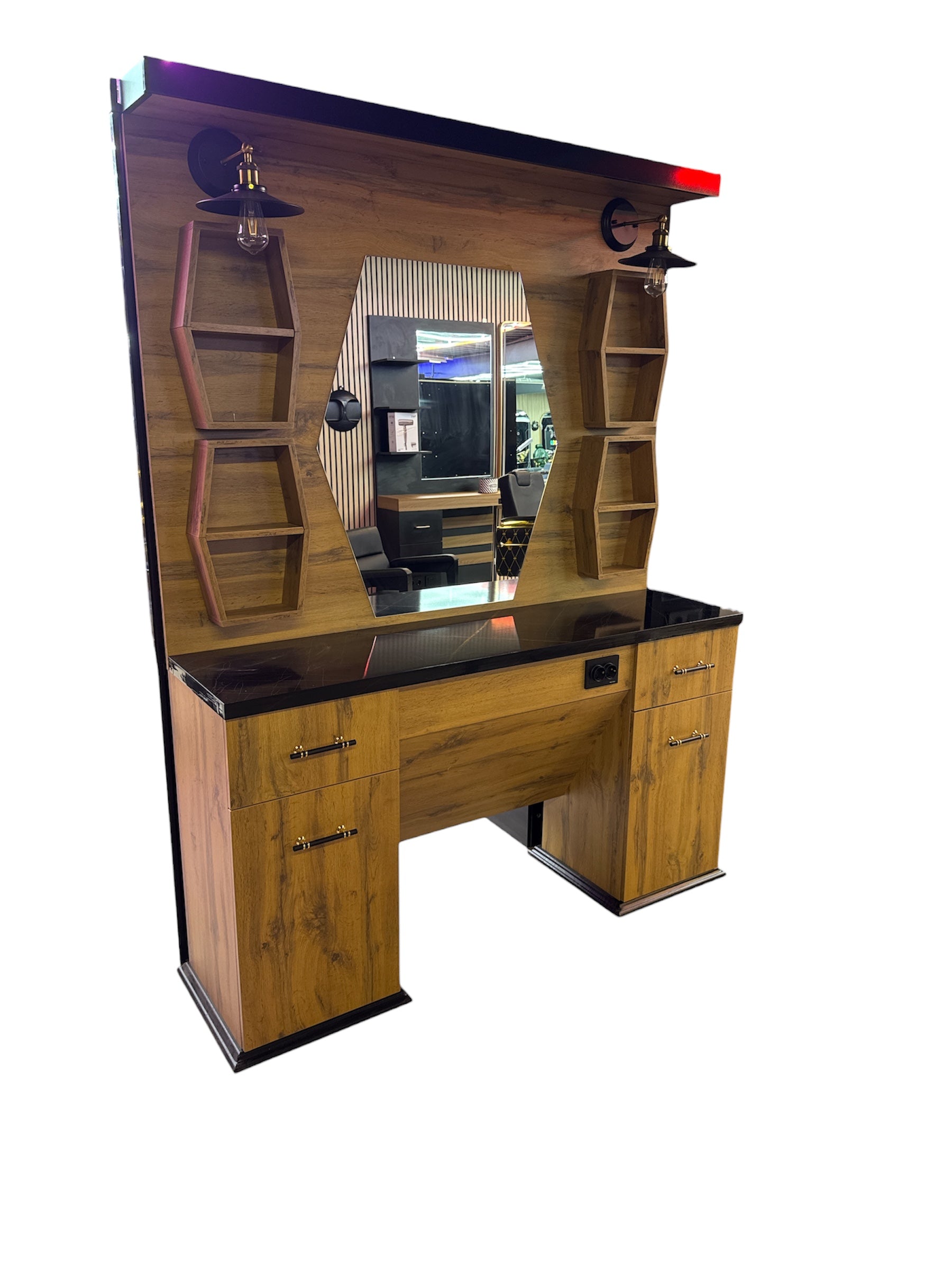 Originele wood licht brown black marble slab